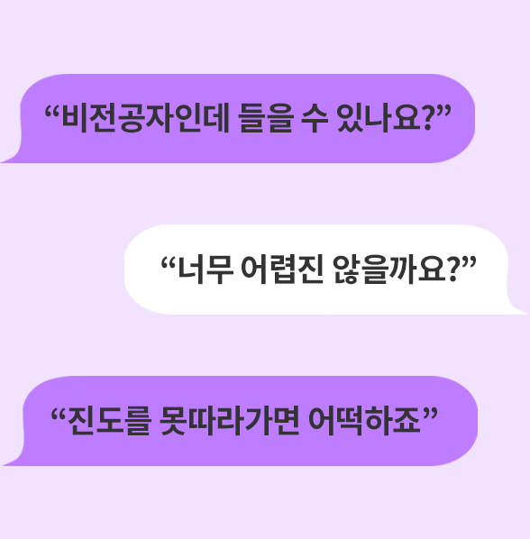 취업이나 난이도에 대한 걱정은 접어두시고 지금 바로 도전해보세요!