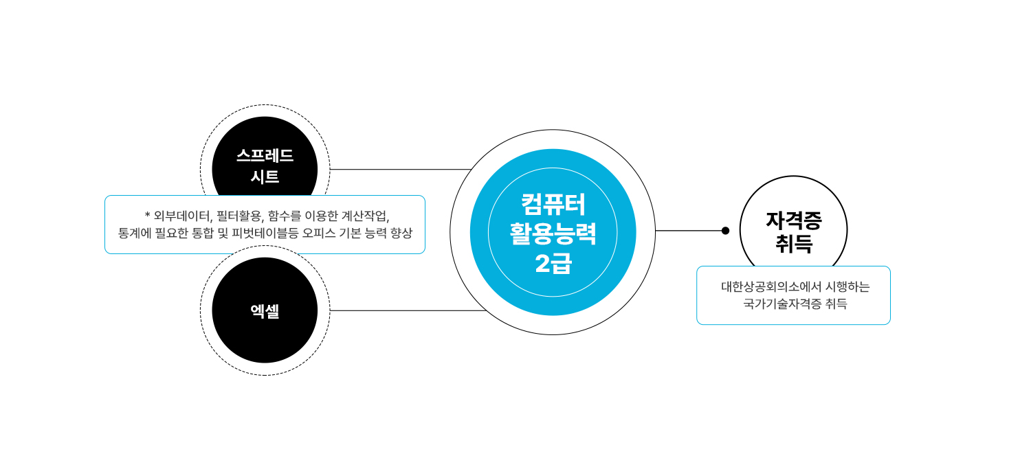 취준생, 초보자 및 비전공자 누구나 컴퓨터활용능력2급 자격증을 위한 훈련 뿐만아니라 실무위주의 교육과정을 통해 취업까지 성공!